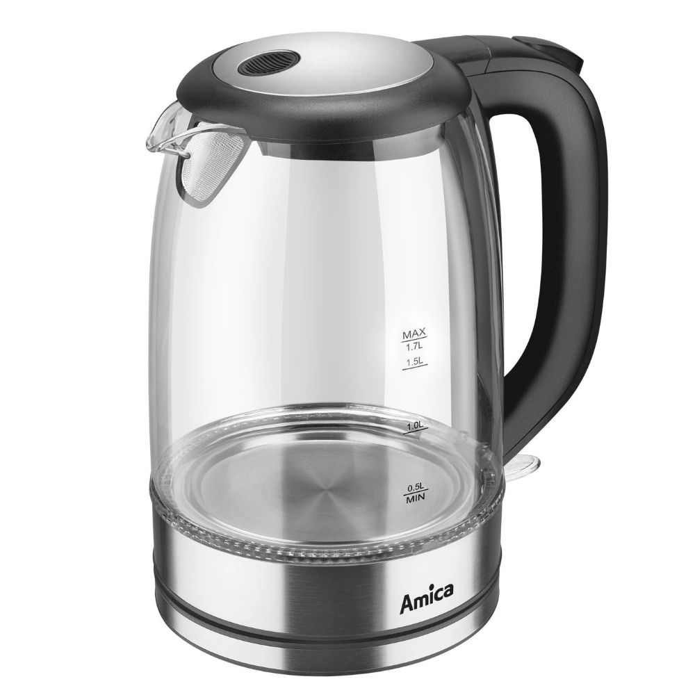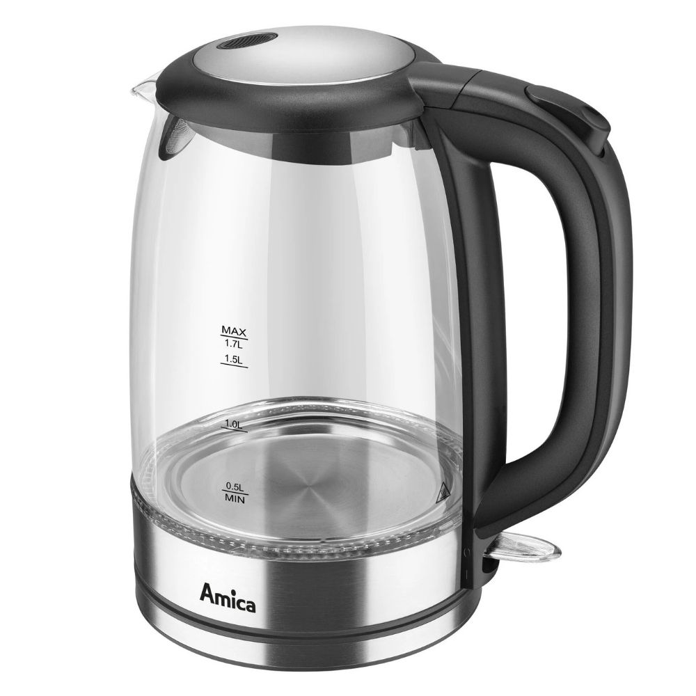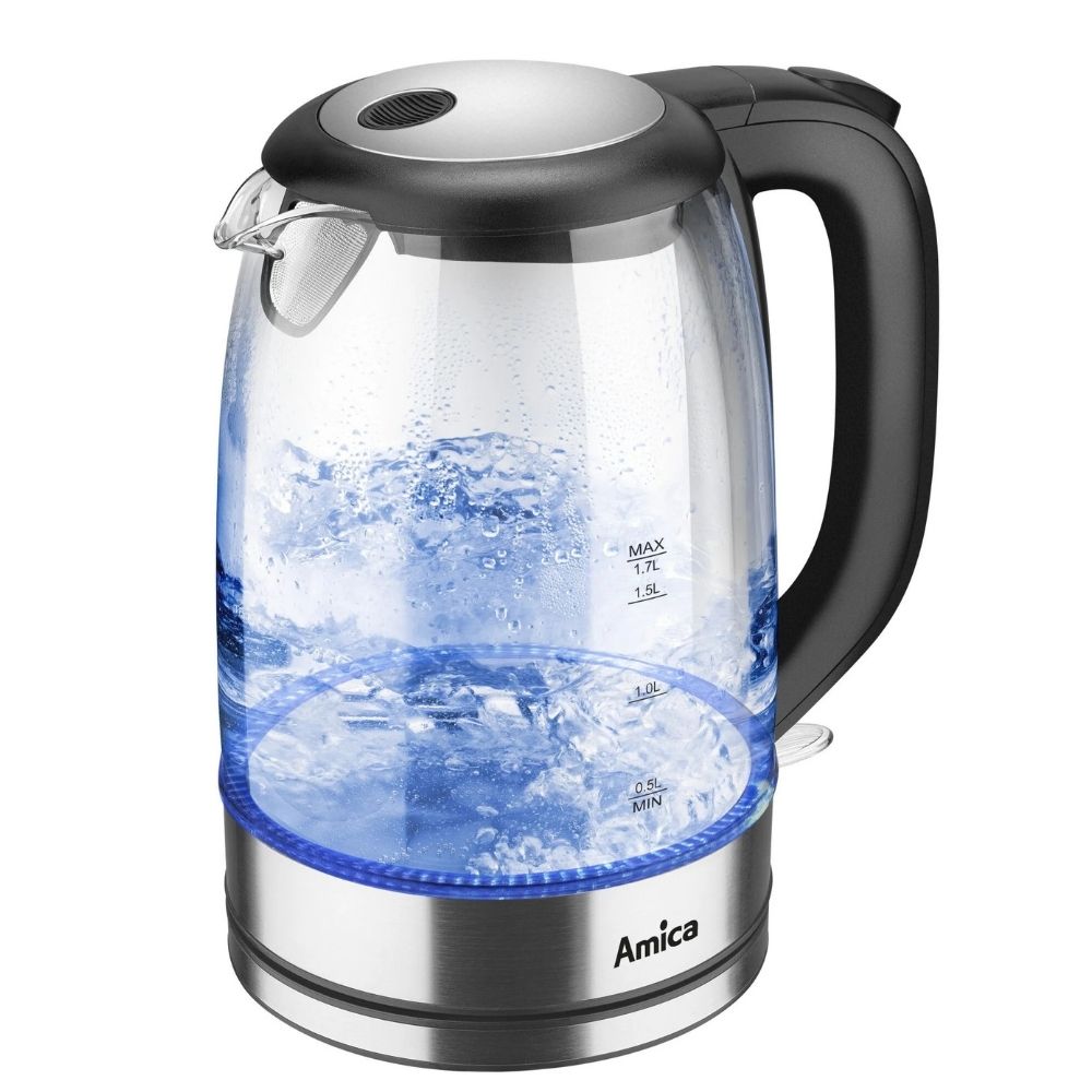 Czajnik Amica KD2050G to stylowy i nowoczesny czajnik elektryczny o pojemności 1,7 l i mocy 2200 W. Dzięki szklanemu korpusowi z odpornego szkła borokrzemowego i podświetleniu LED, stanowi efektowny element każdej kuchni.