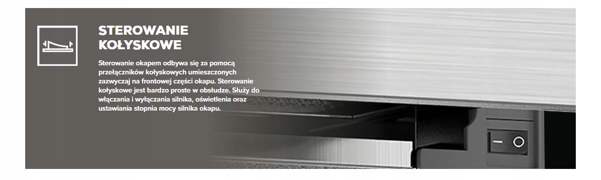 Cechuje się funkcjonalnością oraz komfortem użytkowania. Posiada silnik o 2-stopniowej regulacji prędkości. Może pracować zarówno w trybie zamkniętym jako pochłaniacz, jak i otwartym jako wyciąg. Bardzo łatwe w czyszczeniu filtry aluminiowe zatrzymują i wyłapują cząsteczki tłuszczu i pary, powstające w procesie gotowania, zapewniając czyste powietrze w kuchni. Wbudowane oświetlenie LED gwarantuje właściwą jasność i komfortowe warunki gotowania, a sterowanie mechaniczne kołyskowe wpływa na komfort użytkowania sprzętu. Małe gabaryty pozwolą na zamontowanie okapu w małej kuchni.