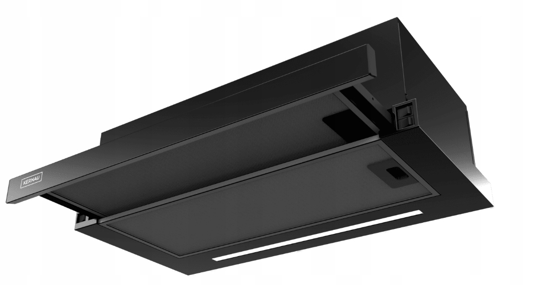 Jego cechą charakterystyczną jest wysuwana szuflada, która zwiększa powierzchnię pochłaniającą powietrze. Szerokość urządzenia wynosi 60 cm, dlatego dobrze sprawdzi się nawet nad klasyczną 4-palnikową płytą indukcyjną bądź gazową. Jego front wykonany jest ze szkła, a montowany w szafce kuchennej korpus jest w kolorze czarnym.