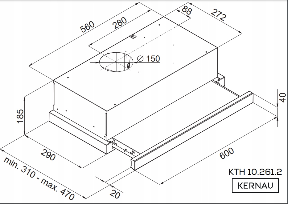 Model KTH 10.261.2 X marki Kernau to niewielki, ale funkcjonalny okap teleskopowy. Jego cechą charakterystyczną jest wysuwana szuflada, która zwiększa powierzchnię pochłaniającą powietrze. Szerokość urządzenia wynosi 60 cm, dlatego dobrze sprawdzi się nawet nad klasyczną 4-palnikową płytą - indukcyjną bądź gazową. Jego front jest w kolorze srebrnym, a montowany w szafce kuchennej korpus jest w kolorze czarnym.