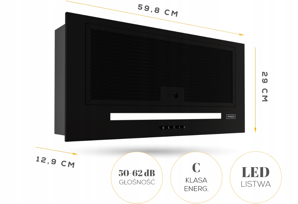Okap podszafkowy Kernau KBH 0662 B 60cm LED Timer