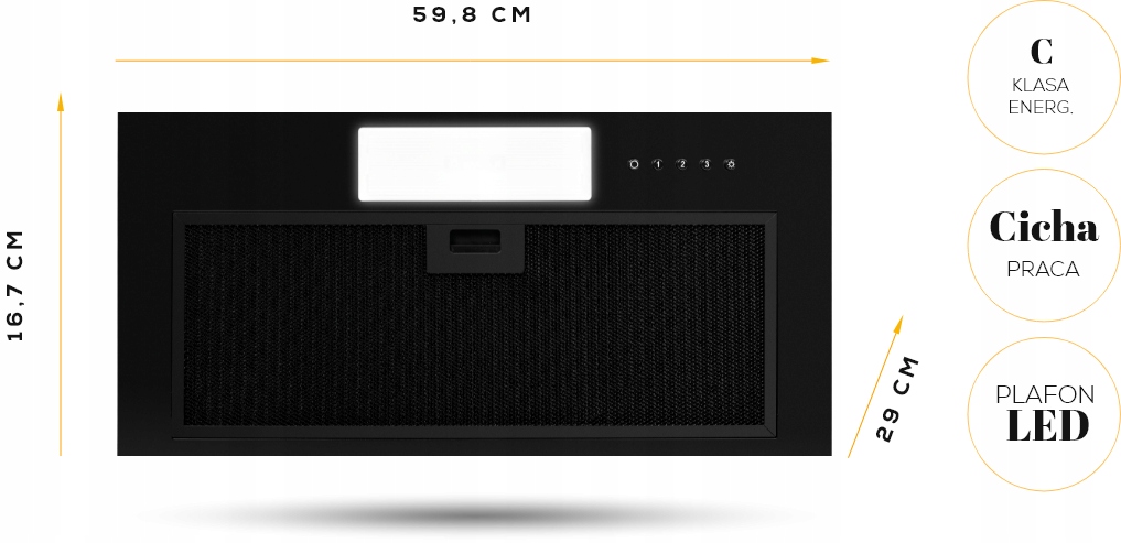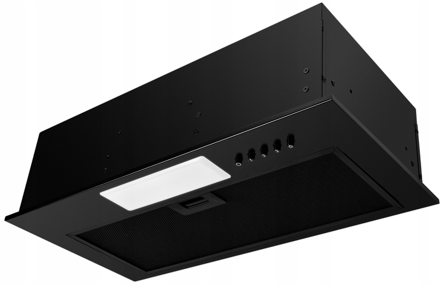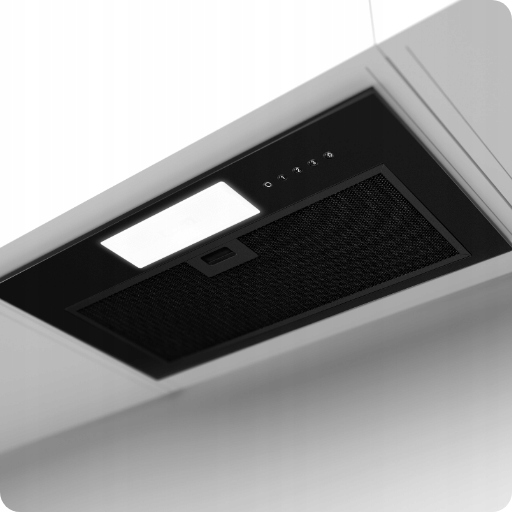 Czarny filtr stanowi integralną całość okapu, będąc praktycznie niezauważalnym. Podnosi wartość estetyczną urządzenia, dzięki czemu idealnie sprawdzi się w domach nowoczesnych, gdzie dbałość o każdy detal ma znaczenie.