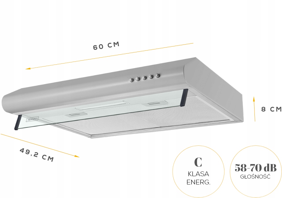 Srebrny okap podszafkowy KBH 0961 S marki Kernau to połączenie stylu i funkcjonalności, które doskonale sprawdzi się w każdej kuchni, niezależnie od jej wystroju. Jego elegancki, srebrny design wprowadza nowoczesny akcent, który pasuje zarówno do klasycznych, jak i współczesnych wnętrz. Urządzenie pracuje w dwóch trybach: jako wyciąg efektywnie usuwający zapachy na zewnątrz oraz jako pochłaniacz, który filtruje powietrze w kuchni. Oświetlenie LED zapewnia jasne i równomierne światło nad blatem, a trzystopniowa regulacja wentylatora umożliwia dostosowanie intensywności wentylacji do aktualnych potrzeb.