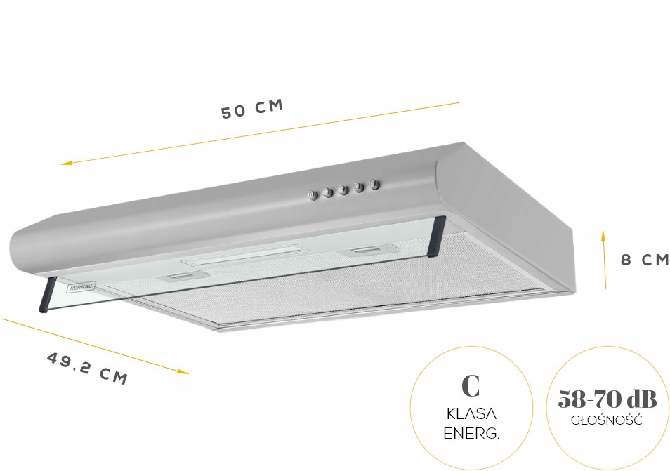 Okap podszafkowy Kernau KBH 0951 S 50cm Przyciski Push-Push LED Srebrny