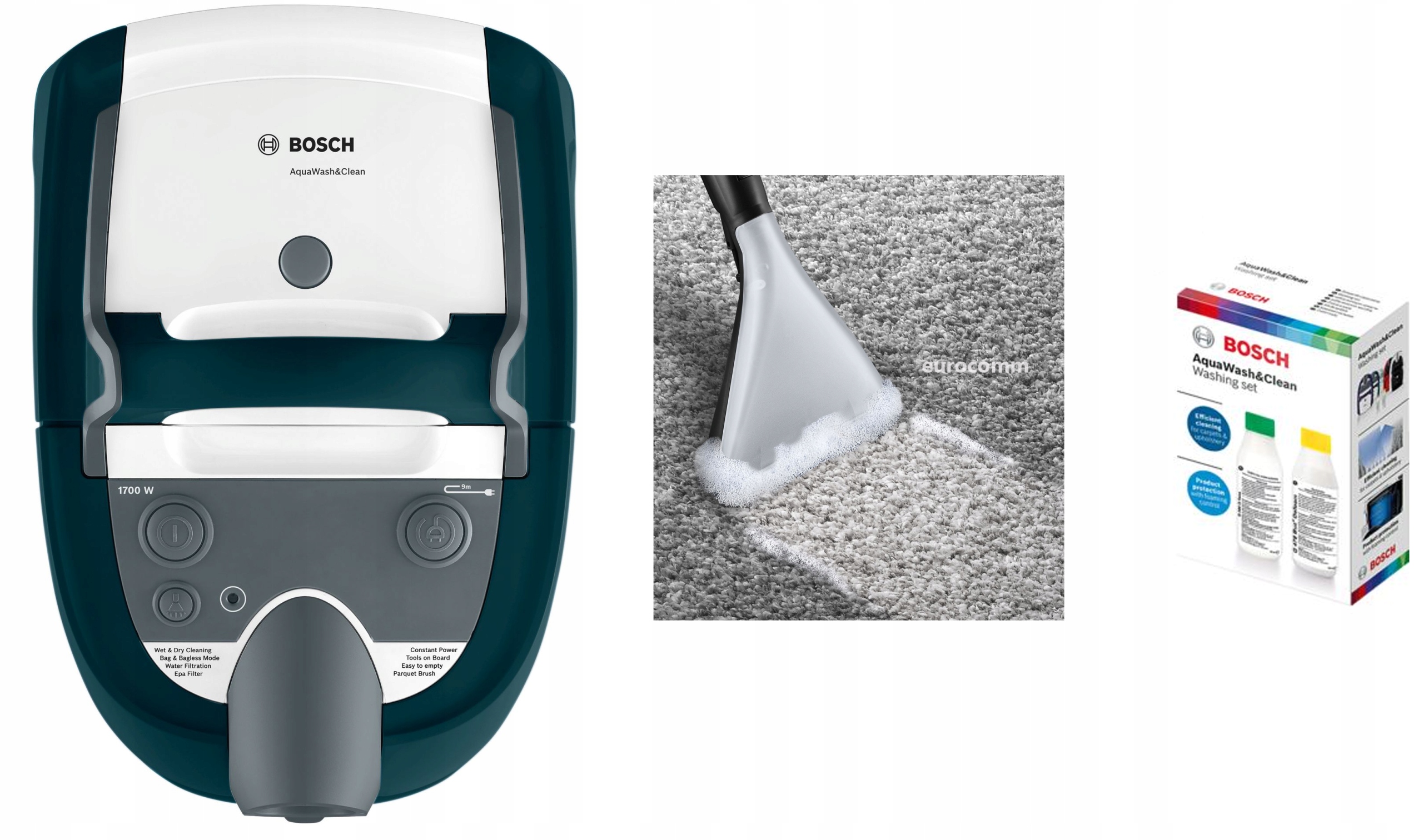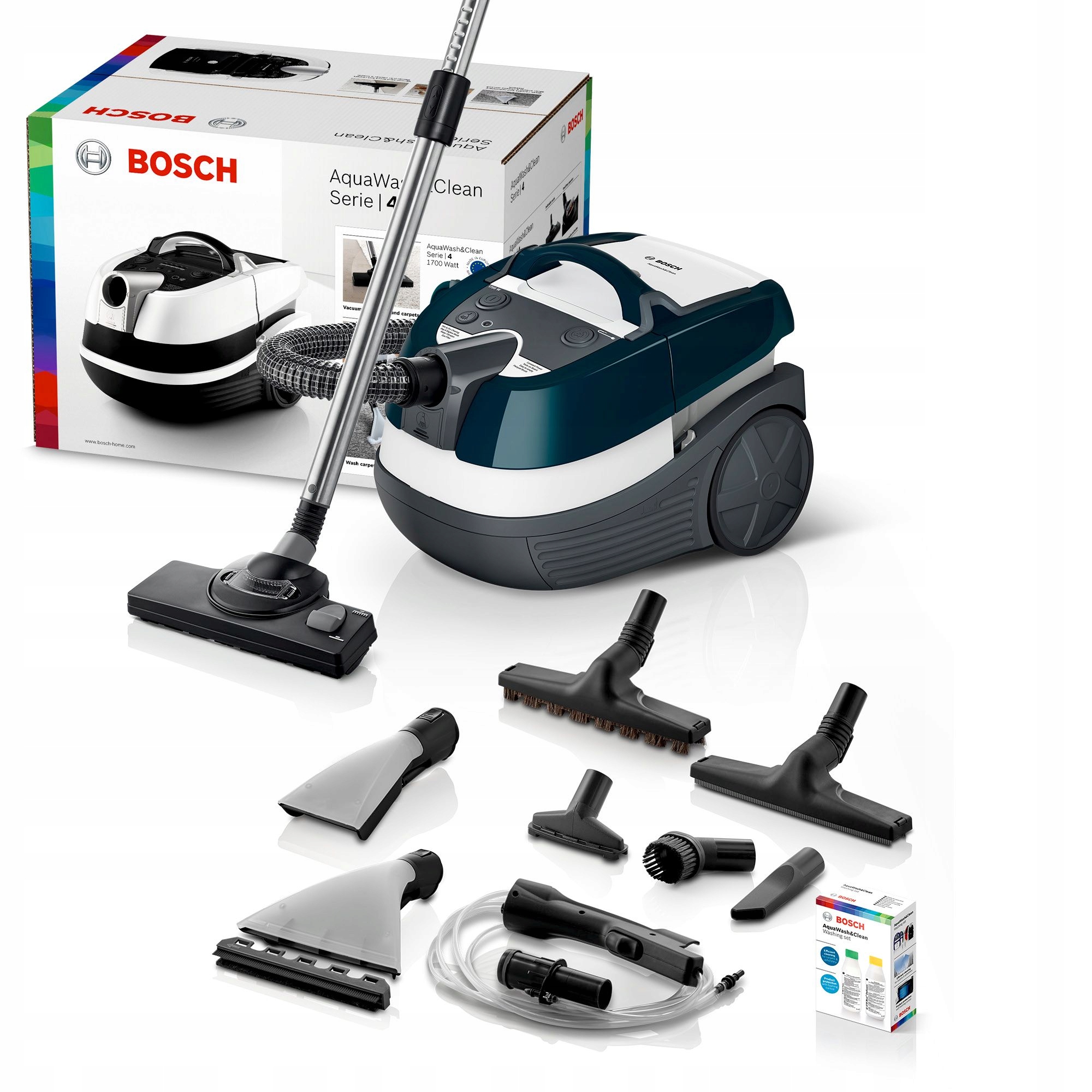 Odkurzacz wielofunkcyjny AquaWash&Clean przystosowany jest do wykonywania wielu zadań związanych z utrzymaniem czystości. Odkurza, zbiera rozlane płyny, pierze uporczywe plamy na dywanie lub tapicerce, a także dba o świeżość powietrza dzięki podwójnemu systemowi filtracji: filtr wodny + filtr EPA.