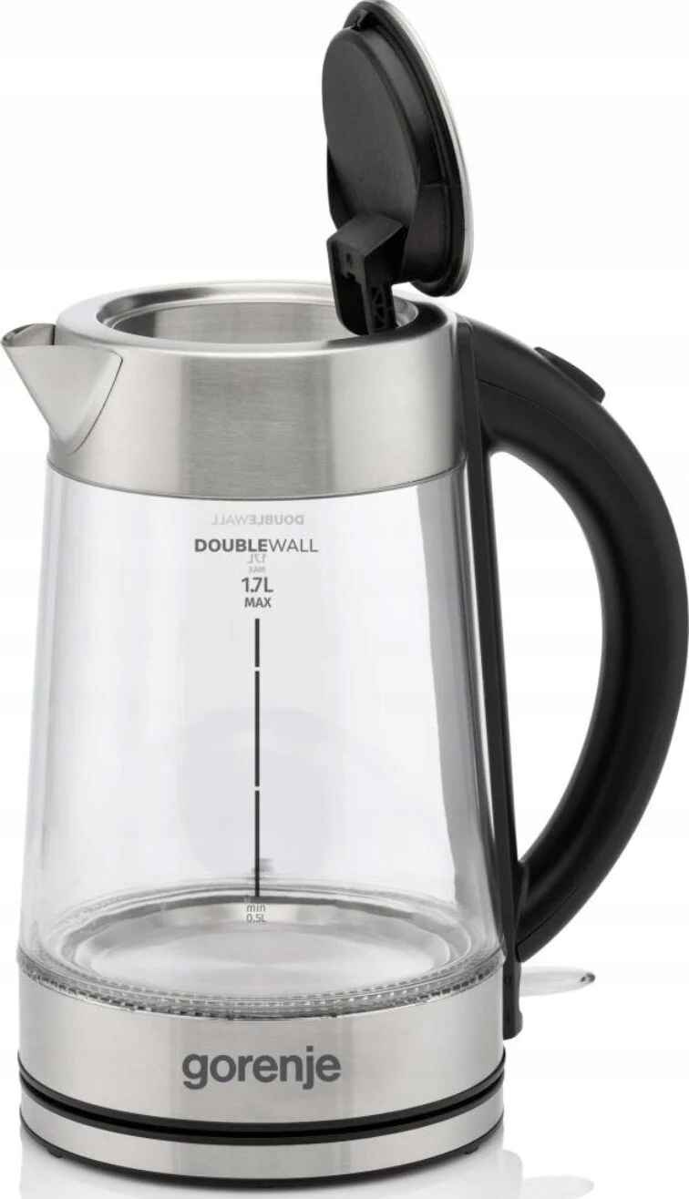 Stylowy czajnik elektryczny wykonany ze szkła i stali nierdzewnej. Dzięki pojemności 1,7 l zagotujesz wodę raz, a cała rodzina lub goście mogą jednocześnie cieszyć się ciepłym napojem. Wyposażony w technologię Strix, podświetlenie LED oraz zabezpieczenia termiczne.